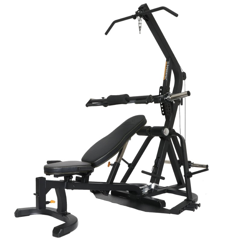 Powertec Levergym® è senza dubbio la stazione home gym più funzionale mai creata. I robusti bracci a leva iso laterali possono sostenere in sicurezza fino a 225 kg, mentre la panca multifunzione può essere separata dalla stazione per un migliore accesso. L'elenco degli esercizi che si possono eseguire è praticamente infinito, soprattutto grazie alla gamma di accessori che si possono aggiungere